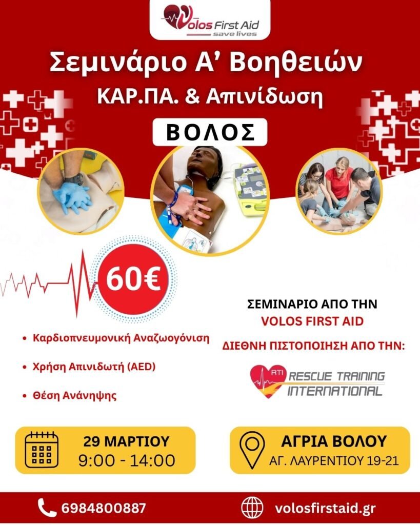 Σεμινάριο ΚΑΡ.Π.Α. & Απινίδωσης στον Βόλο – 29 Μαρτίου
