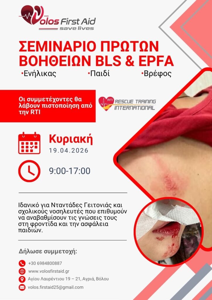 Σεμινάριο ΒLS & Επείγουσες Παιδιατρικές Πρώτες Βοήθειες (EPFA) – 5 Απριλίου στον Βόλο